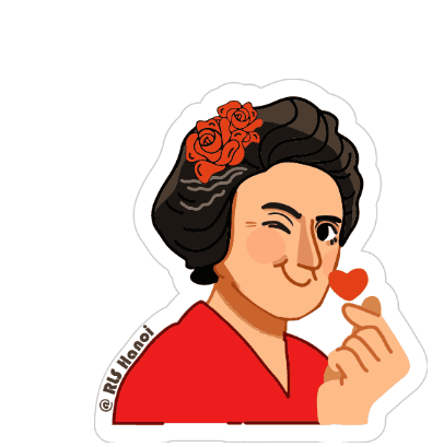 Rosa Luxemburg winks playfully and forms a finger heart, expressing love and affection in this animated sticker from Rosaluxemburgstiftung.