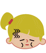 Rosarioplus Noticias cartoon girl looks stressed, unwell. Wavy lines on her forehead, a large blue sweat drop forms and slides down her face.