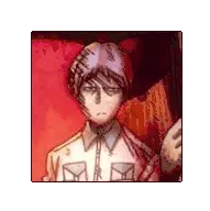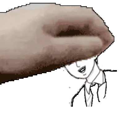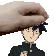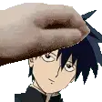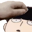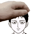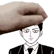 Animated sticker featuring Roshuto and Dozen from Mob Psycho 100, showing one character's hand gently touching the other's forehead.