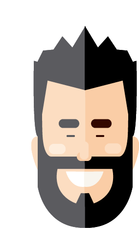 A stylized illustration of a happy bearded man with dark hair and a mustache, smiling broadly. Part of the Rosto Gifs collection.
