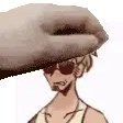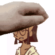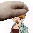 A cartoon girl from 'Rot In Paradise' by Racheldrawsthis, wearing glasses and a hat, with a hand covering her head.
