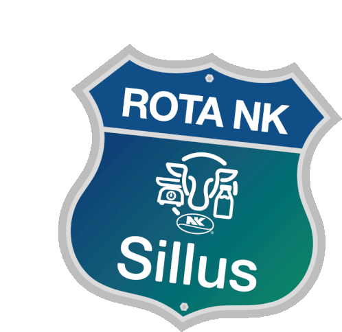A shield-shaped logo featuring 'ROTA NK' and 'Sillus', with icons representing livestock, scales, and milk, related to soy and corn products.