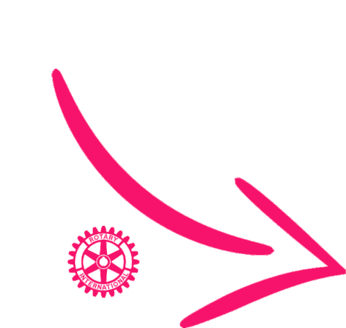 A vibrant pink blinking arrow points down, featuring the Rotary International logo and 'Rotaract Distrito4680'.