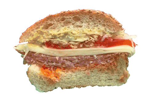 A delicious Leicypoopoo rotating sandwich sticker, featuring a sub with sesame bread, deli meat, cheese, lettuce, and tomato.