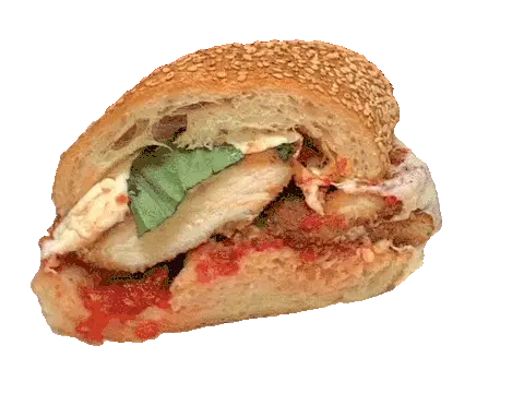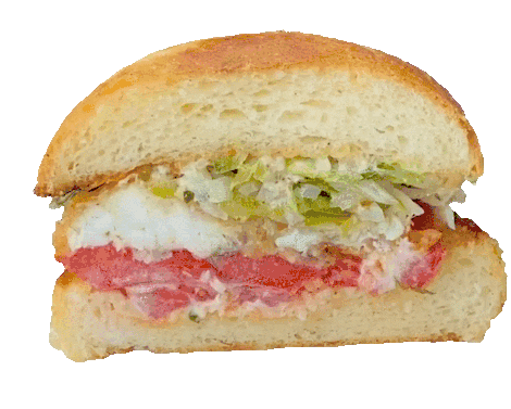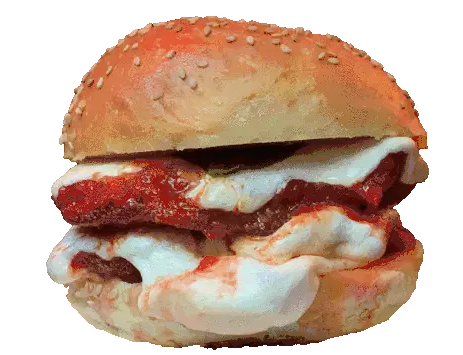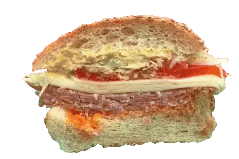 An animated sticker featuring a delicious sandwich, first shown in cross-section and then whole, rotating continuously.