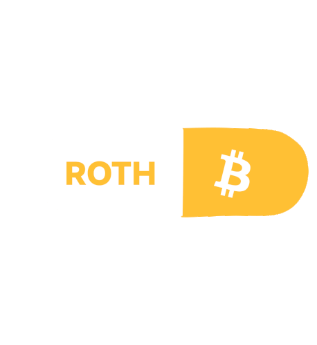 A graphic sticker featuring the word 'ROTH' next to a pill-shaped icon with the Bitcoin logo, symbolizing a Roth IRA for Bitcoin.