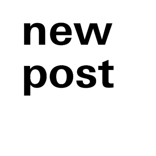 An animated sticker by Roto Rotofrank featuring the text 'new post' appearing within a growing black square outline.