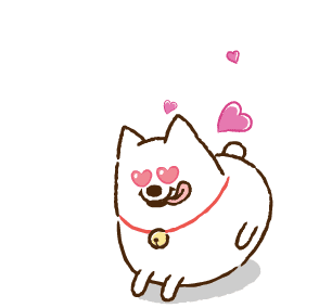 Roy666's Eddy, a cute cartoon dog, wiggles happily with heart-shaped eyes and pink hearts floating around it.