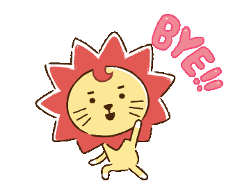 Roy Wang's cartoon lion character waves goodbye with a cheerful 'BYE!!!' message, exiting the frame.