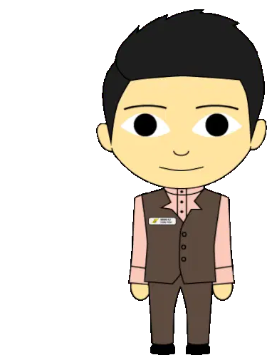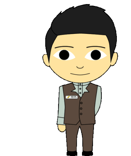 Royal Brunei Airlines RBA cabin crew member, a friendly male character, waves hello with a cheerful smile.