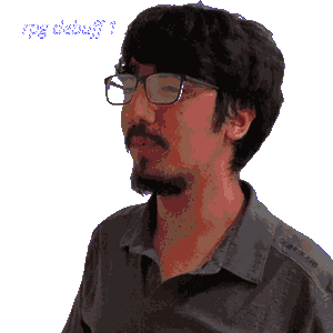 a pixelated image of a man wearing glasses and a black shirt
