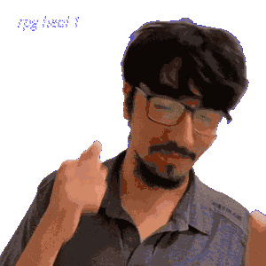 a pixelated image of a man wearing glasses and giving a thumbs up
