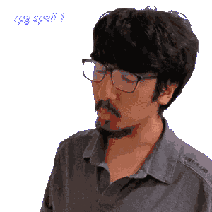 a man with a beard wearing glasses and a gray shirt