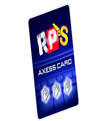 An animated digital card for RPS (Rock Paper Scissors) featuring the game's iconic hand gestures and "Axess Card" branding.