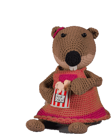 Piotta La Marmotta, the beloved character from RSI Radiotelevisione Svizzera Italiana, enjoys a movie night with popcorn.