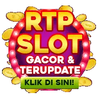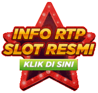 Animated sticker featuring a red star with text 'INFO RTP SLOT RESMI' and 'TERGACOR TERUPDATE', prompting users to 'KLIK DI SINI'.