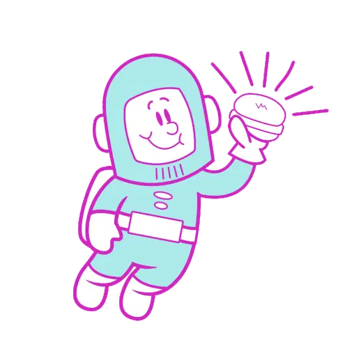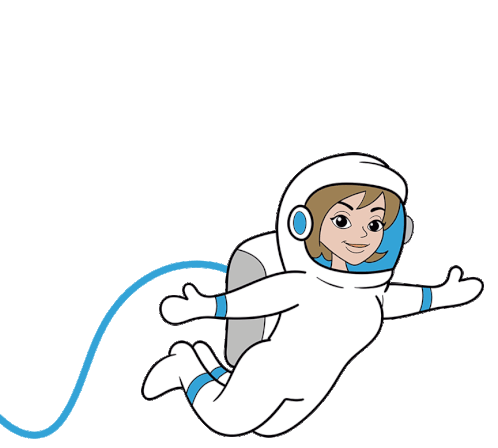 Ruanzikaad astronaut floats gracefully in space, wearing a white suit with blue accents and a friendly smile.