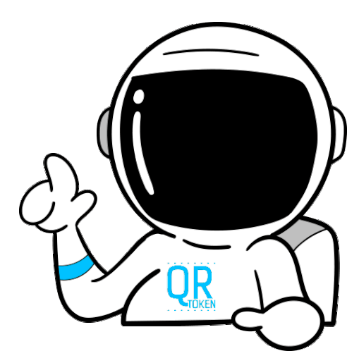 Ruanzikaad, a friendly cartoon astronaut, winks and smiles while giving a 'number one' gesture, featuring 'QR TOKEN' on the suit.