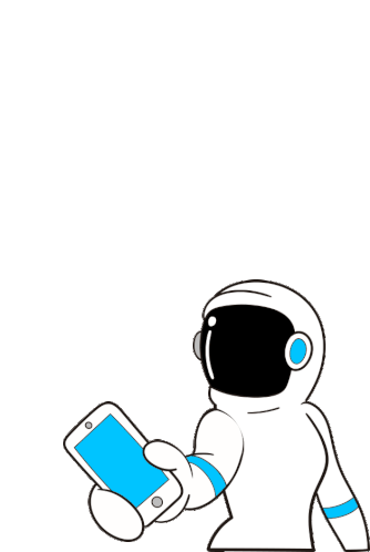 Ruanzikaad, a woman in a space suit, winks and smiles while holding a smartphone.