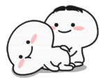 Two cute cartoon characters affectionately rubbing against each other, expressing love and closeness with happy smiles.