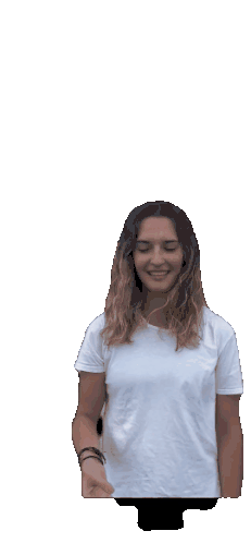 A smiling woman in a white t-shirt makes a funny face, looking through her fingers. Features 'B Otes' and 'Rugby' themes.