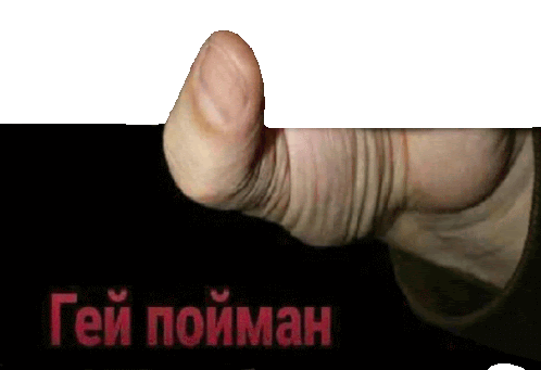 a close up of a person 's thumb with the words " гей пойман " in red behind it
