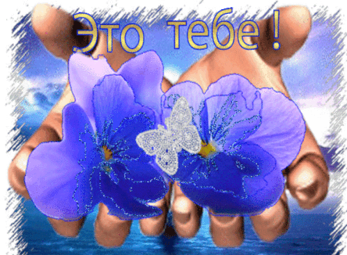 Two cupped hands gently present beautiful purple flowers and a sparkling butterfly, conveying the heartfelt message 'This is for you!'