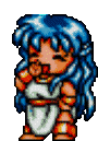 Rulue, the anime girl from Puyo Puyo, is depicted laughing joyfully with her signature blue hair and white dress.