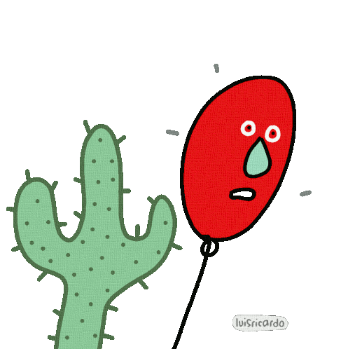 a cartoon drawing of a cactus and a red balloon with a face on it by luisricardo