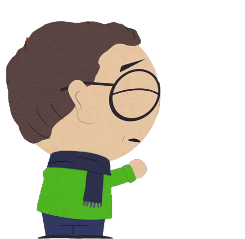 Mr. Mackey from South Park quickly turns and runs away, looking surprised or scared.