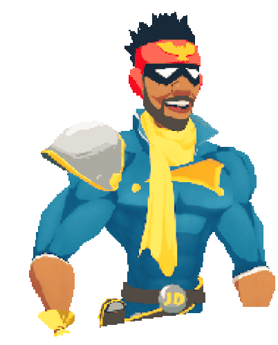 Captain Falcon from Super Smash Bros salutes in pixel art style. Featuring Run J Drun and Jdwitherspoon.