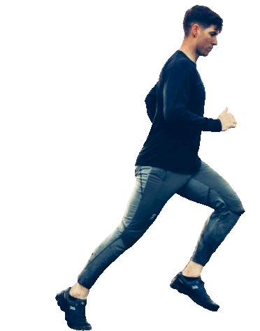 A man in athletic wear runs with determination, showcasing a dynamic pose. Perfect for fitness and active themes.