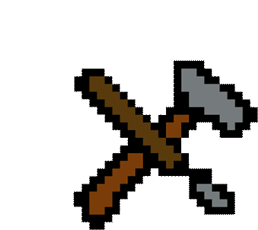 A pixel art sticker featuring crossed tools, a pickaxe and a hammer, iconic to the RuneScape OSRS game.