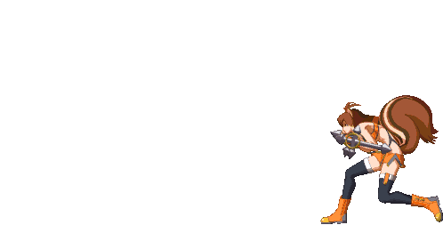 An anime-style character with a distinctive tail performs a rapid rushing combo attack using a large scythe and a gauntlet.