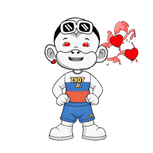 a cartoon character is wearing a shirt that says ' zhot jr. '