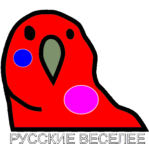 a drawing of a purple bird with circles in its eyes and the words russian veselie below it