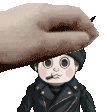 Ryoma Hoshi from Danganronpa, depicted in pixel art, gently holding his pet with his hand.
