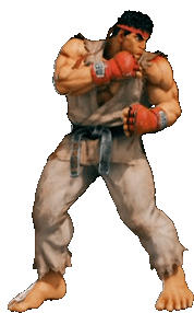 Ryu from Street Fighter V in his iconic fighting stance, ready for battle with red gloves and headband.
