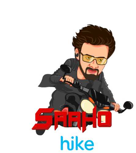 An animated Saaho character, wearing sunglasses and a black jacket, rides a motorcycle with the Hike logo.