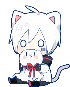 Sachiikobayashi, a cute cat-eared character with Big Eyes, holds a white plushie with a red bow, looking surprised.