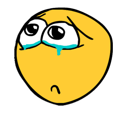 A yellow emoji face with large, sad eyes crying blue tears, expressing deep sadness and distress.