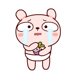 A cute pink rabbit emoji with big eyes is crying sadly, holding a small purple object.