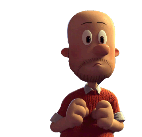 Martin Wright, the bald cartoon character from Big Nate, looks sad with wide, pleading eyes and clasped hands.