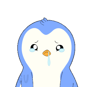 A cute Pudgy Penguin cries profusely with tears and snot, expressing sadness and a strong 'no' or 'oh no' sentiment.