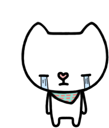 A white cat with tears streaming down its face, expressing sadness. The background color dynamically changes.