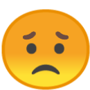 A yellow emoji with a sad expression, featuring downturned eyebrows and a frowning mouth, conveying unhappiness.