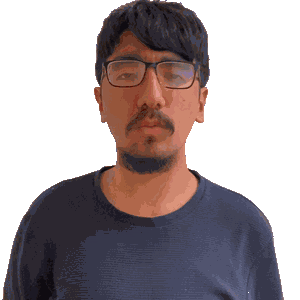 a man with glasses and a beard is making a funny face
