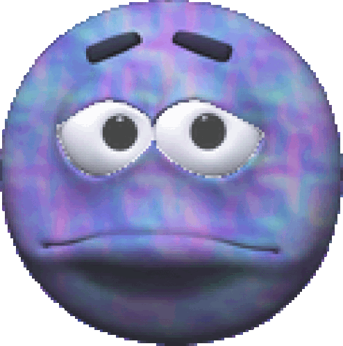a purple smiley face with white eyes and a sad look on its face