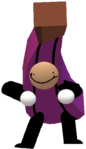 A cartoon character in a purple cape and brown hat performs a safe spooky dance, perfect for Halloween fun.