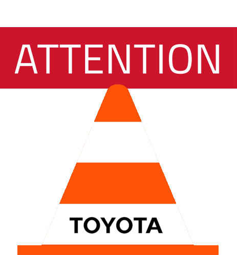 An animated sticker featuring an 'ATTENTION' banner and a Toyota safety cone, emphasizing workplace safety.